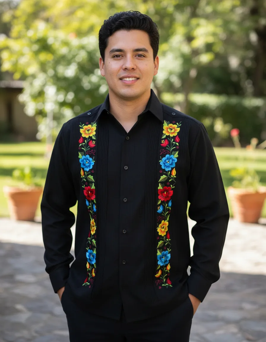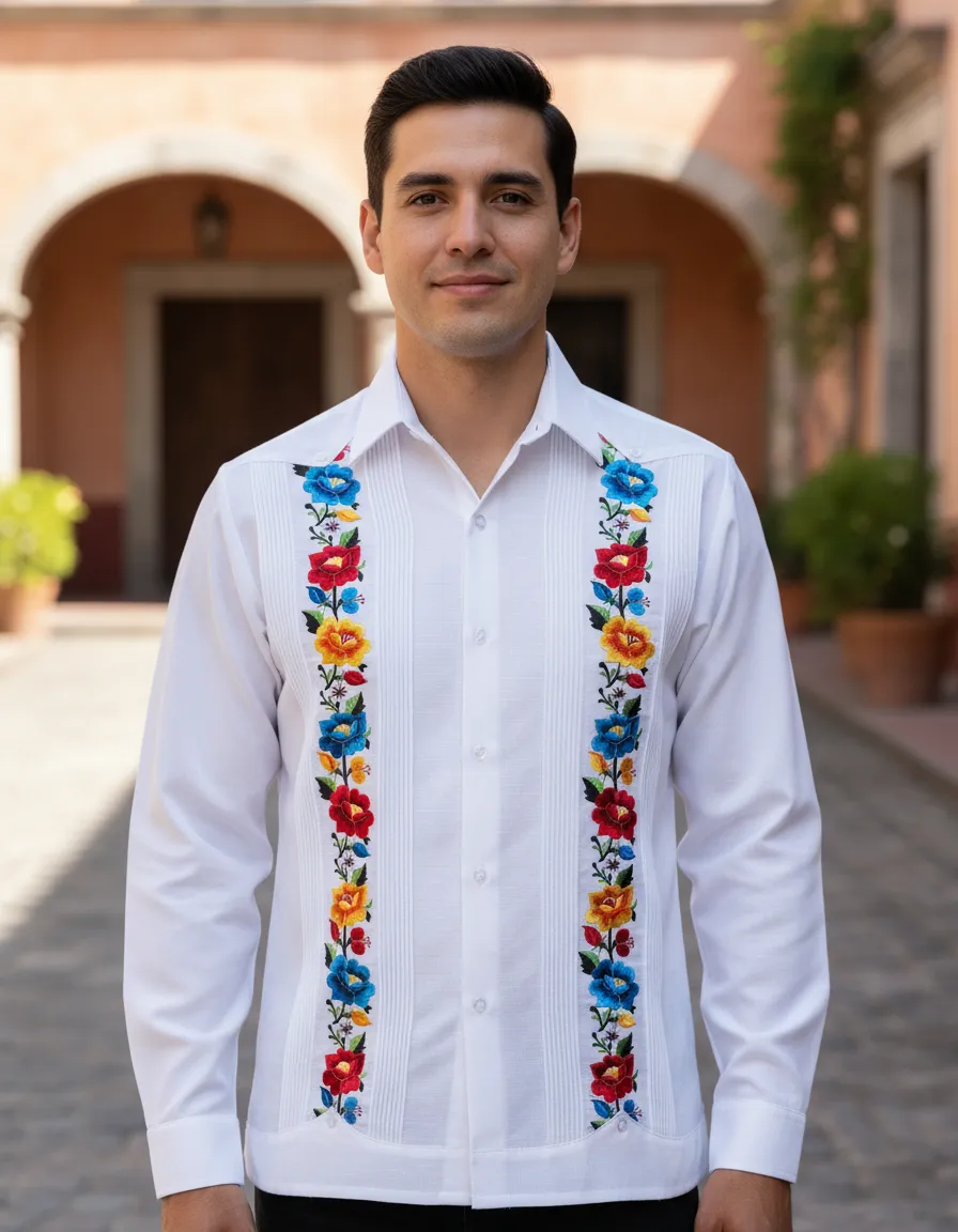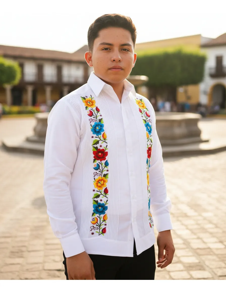 La Guayabera Bordada Estilo Yucateco modelo Basilio de Mayakim es la elección perfecta para el hombre moderno que busca elegancia y comodidad. Confeccionada en algodón de alta calidad, esta camisa de manga larga presenta un diseño bordado que resalta la tradición y el estilo contemporáneo, ideal para ocasiones formales como bodas y fiestas. Su cuello americano y su calce suelto garantizan un ajuste cómodo, permitiendo libertad de movimiento sin sacrificar la sofisticación. Esta prenda es perfecta para la temporada de primavera/verano, ofreciendo frescura y estilo en cada uso. La Guayabera Basilio es más que una camisa; es una declaración de estilo que combina la herencia cultural con la moda actual. Ideal para el novio que desea destacar en su gran día o para cualquier evento elegante, esta camisa se convertirá en un elemento esencial en el guardarropa masculino.
