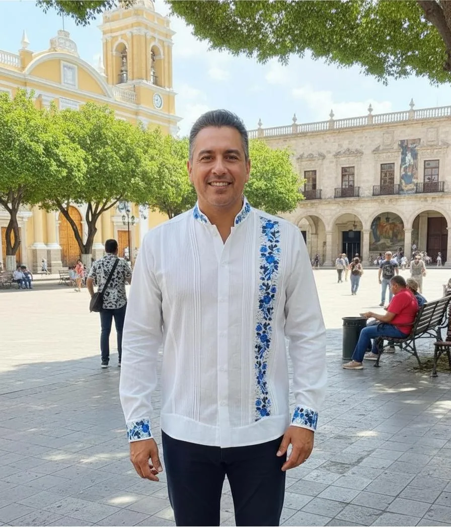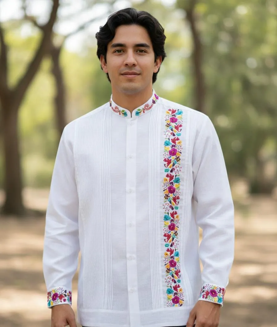 La camisa guayabera bordada Palomita 02 de Mayakim es una prenda única que combina elegancia y tradición. Con su distintivo cuello mao bordado y un diseño de manga larga, es ideal para ocasiones especiales como aniversarios, bodas y celebraciones. Fabricada en material lino look, esta camisa ofrece una experiencia de uso excepcionalmente cómoda y fresca, perfecta para cualquier evento. Su estilo casual formal y elegante permite que este modelo pueda ser lucido tanto en fiestas como en reuniones más formales, aportando un toque distintivo a tu atuendo. El calce suelto de Palomita 02 asegura libertad de movimiento y comodidad, haciéndola una opción ideal para quienes buscan un equilibrio entre lo clásico y lo contemporáneo. Da un paso hacia la sofisticación en tu vestuario con esta obra maestra que ’celebra la herencia cultural con cada puntada bordada.