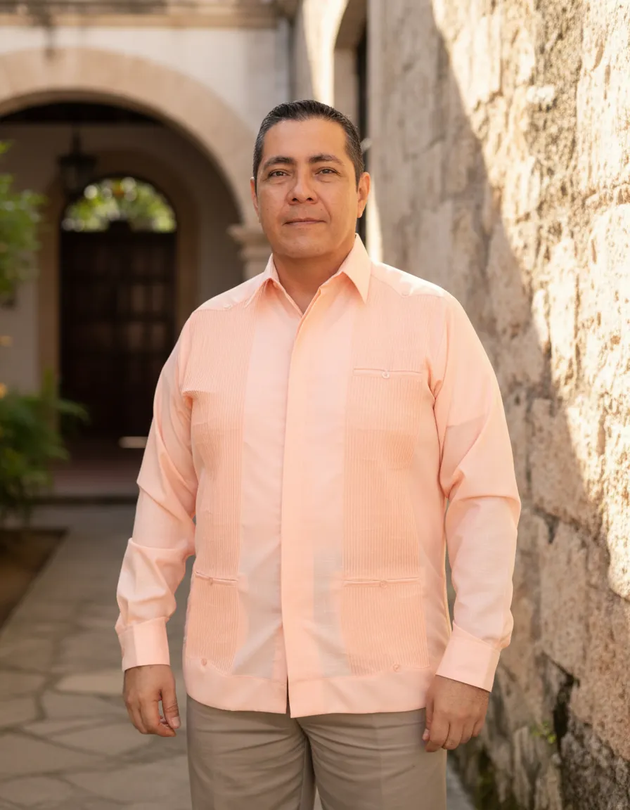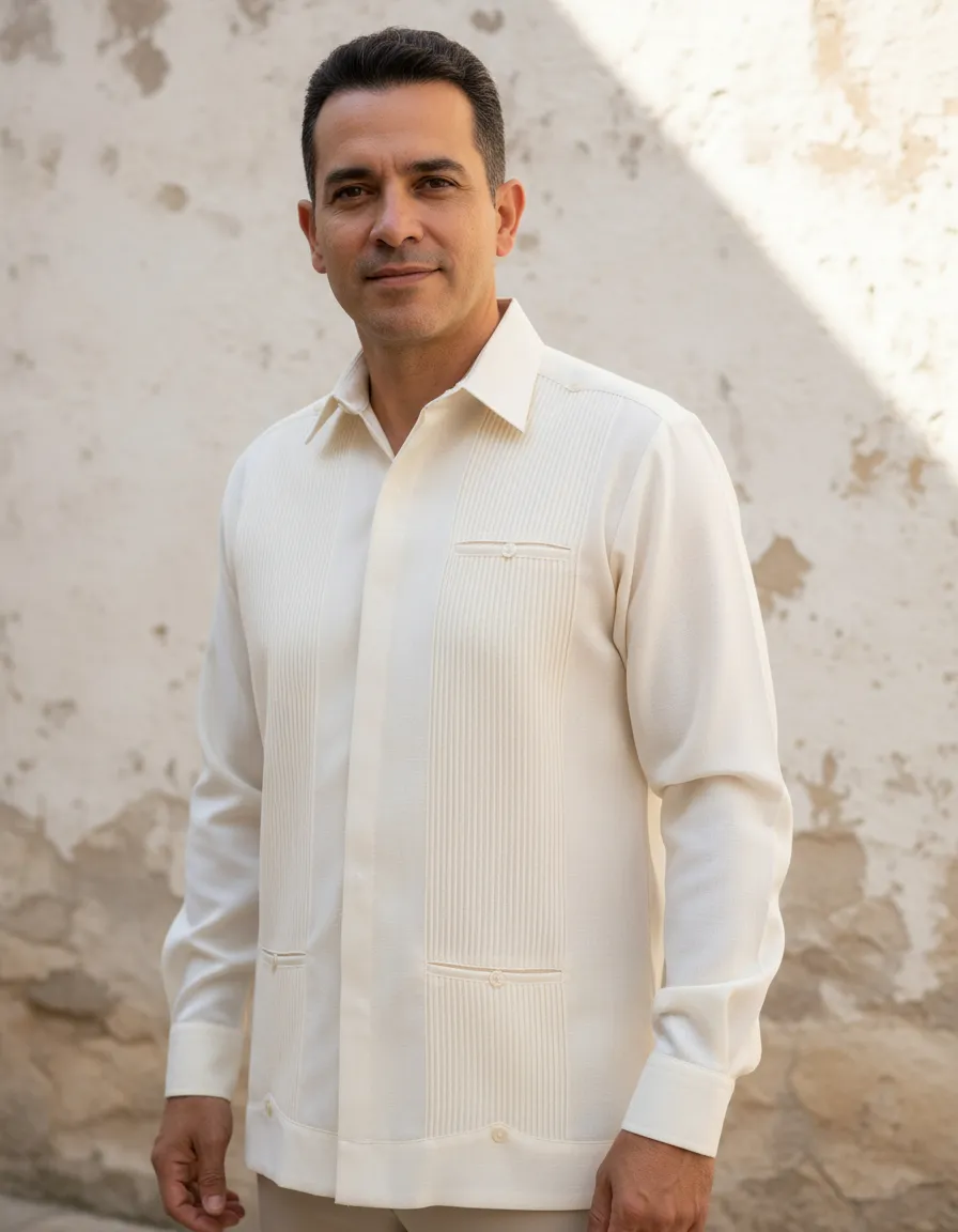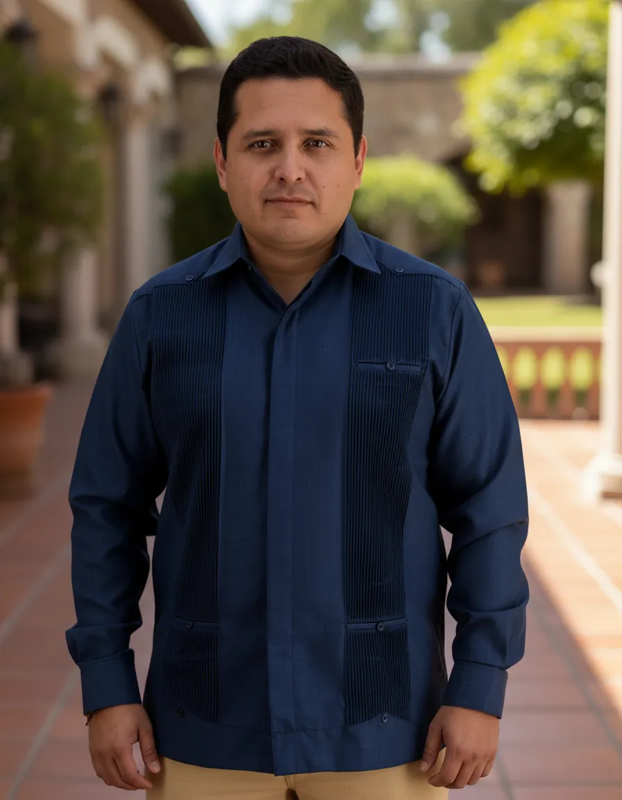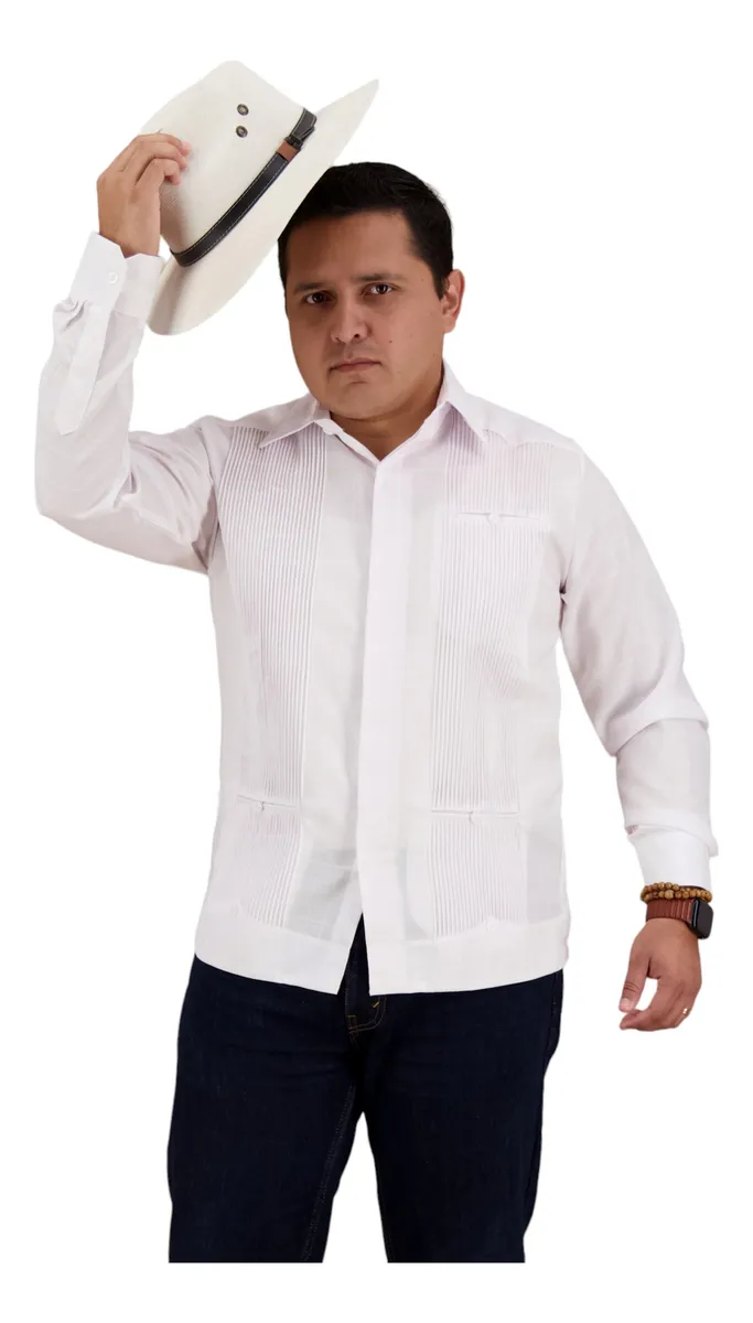 La Guayabera Yucateca Presidencial de Mayakim es una prenda que combina elegancia y comodidad, ideal para hombres que buscan un estilo casual formal. Confeccionada en lino y algodón, esta camisa ofrece una textura suave y transpirable, perfecta para las celebraciones de otoño e invierno. Su diseño con cuello americano y manga larga proporciona un ajuste recto que favorece la figura masculina. Esta guayabera la convierte en una opción versátil que se adapta a diversas ocasiones, desde fiestas familiares hasta eventos más formales. Su estilo distintivo y su confección de alta calidad aseguran que esta prenda se mantenga en excelente estado a lo largo del tiempo. La Guayabera Yucateca Presidencial es una elección que refleja tradición y modernidad, ideal para el hombre contemporáneo que aprecia la cultura y el buen vestir.