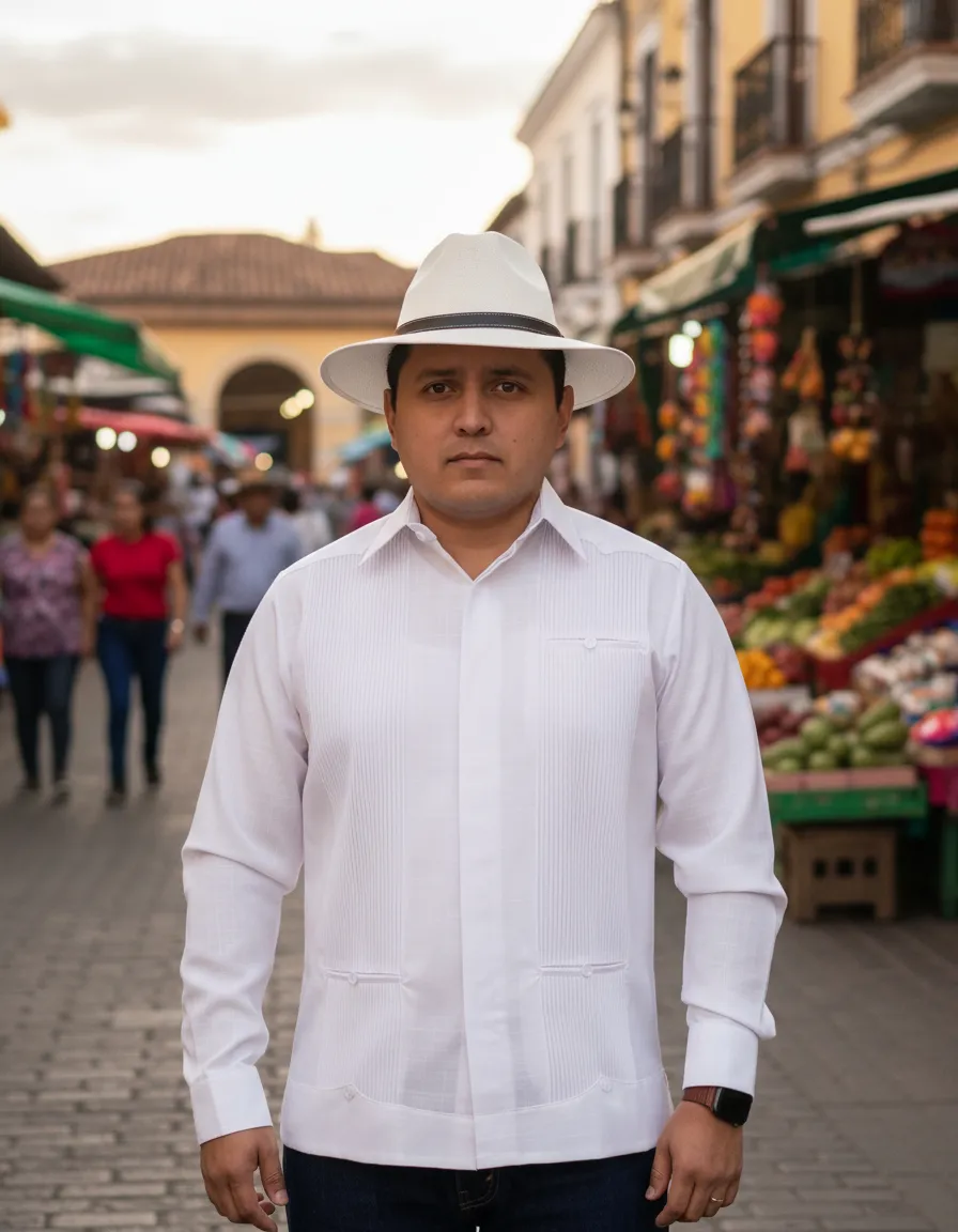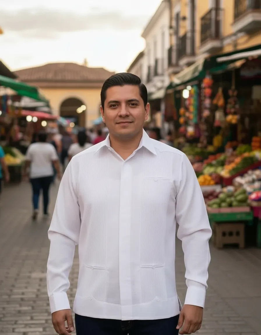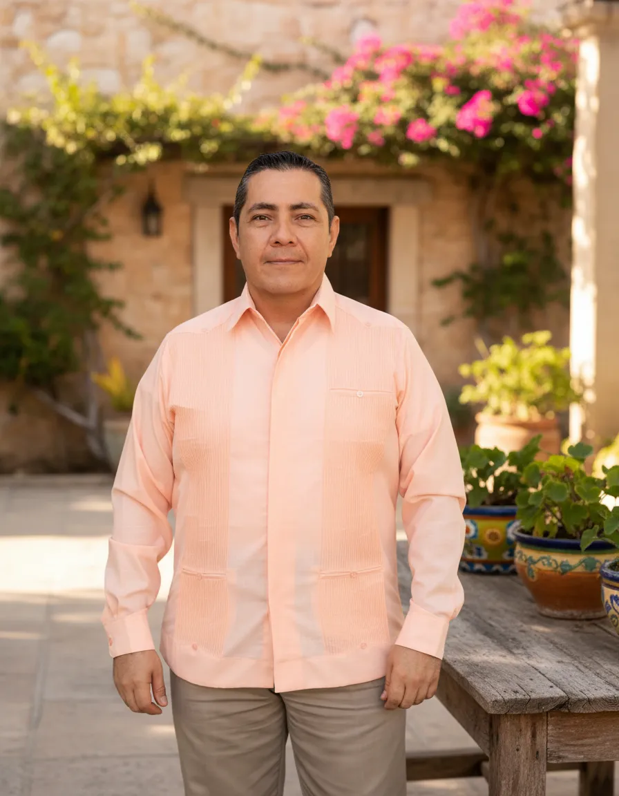 La Guayabera Yucateca Presidencial de Mayakim es una prenda que combina elegancia y comodidad, ideal para hombres que buscan un estilo casual formal. Confeccionada en lino y algodón, esta camisa ofrece una textura suave y transpirable, perfecta para las celebraciones de otoño e invierno. Su diseño con cuello americano y manga larga proporciona un ajuste recto que favorece la figura masculina. Esta guayabera la convierte en una opción versátil que se adapta a diversas ocasiones, desde fiestas familiares hasta eventos más formales. Su estilo distintivo y su confección de alta calidad aseguran que esta prenda se mantenga en excelente estado a lo largo del tiempo. La Guayabera Yucateca Presidencial es una elección que refleja tradición y modernidad, ideal para el hombre contemporáneo que aprecia la cultura y el buen vestir.