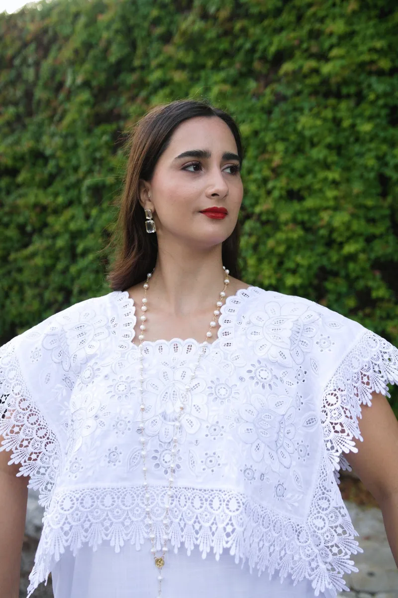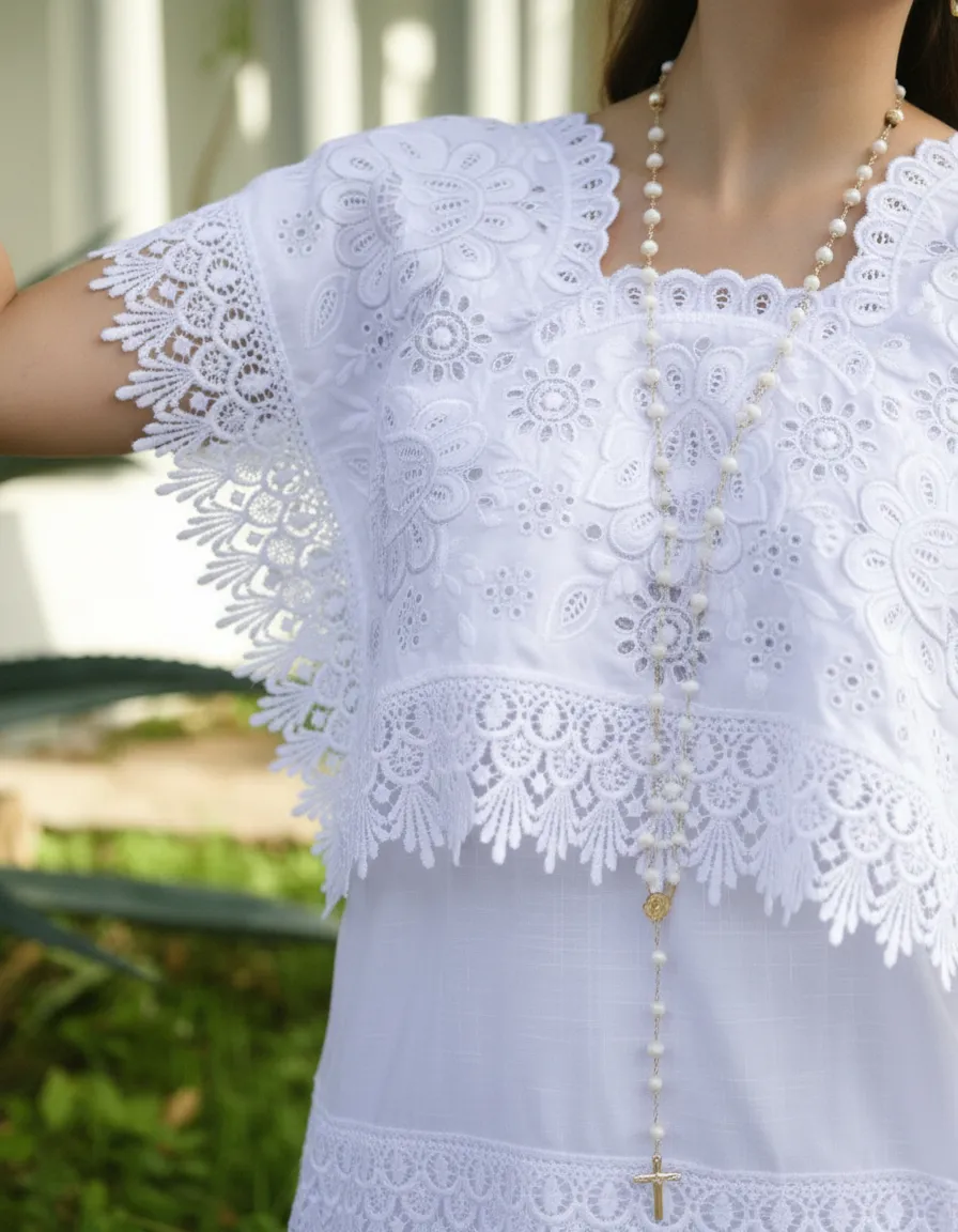 El Terno Yucateco Bordado Blanco Calado A Mano de Mayakim es una pieza única que combina tradición y elegancia. Diseñado para mujeres adultas, este vestido holgado está confeccionado en algodón de alta calidad, ofreciendo comodidad y frescura en cada uso. Su largo y su cuello cuadrado aportan un toque sofisticado, ideal para ocasiones especiales como bodas, aniversarios y ceremonias.