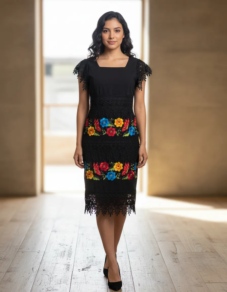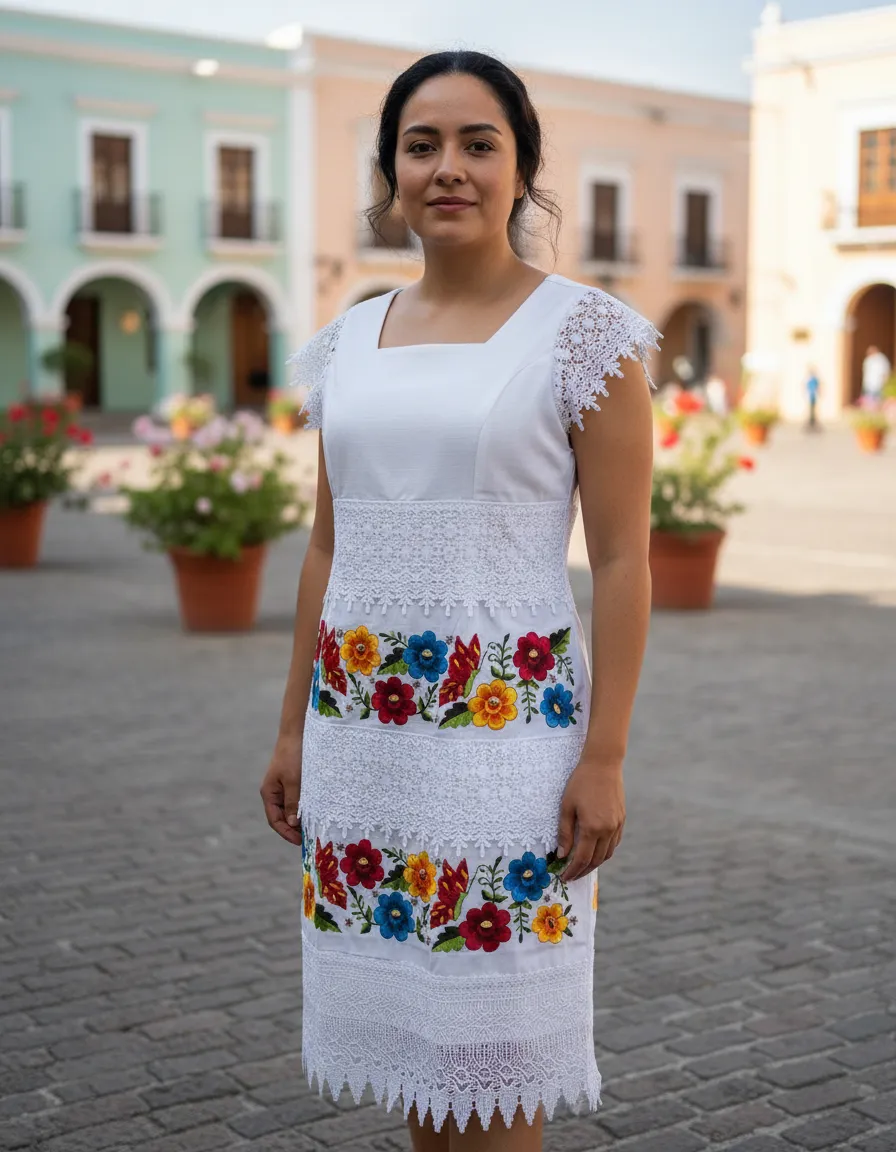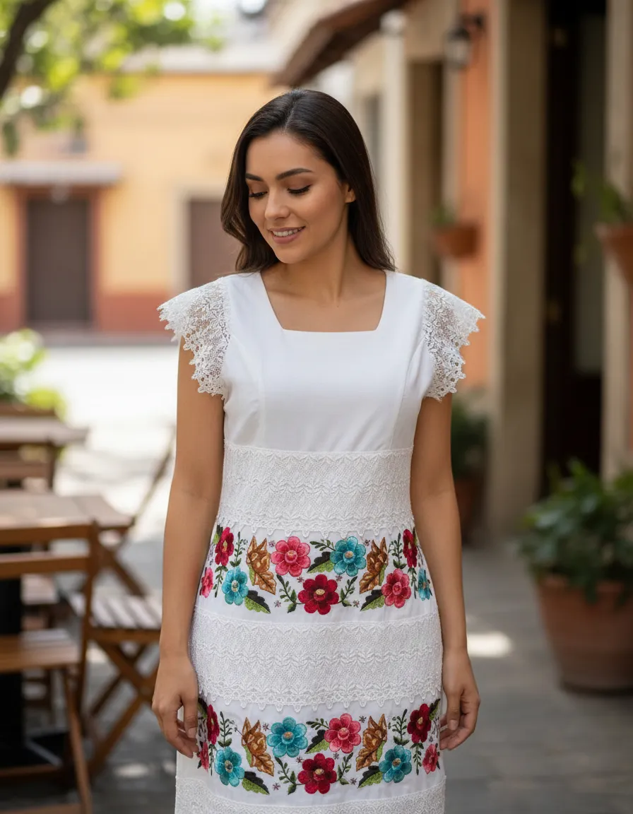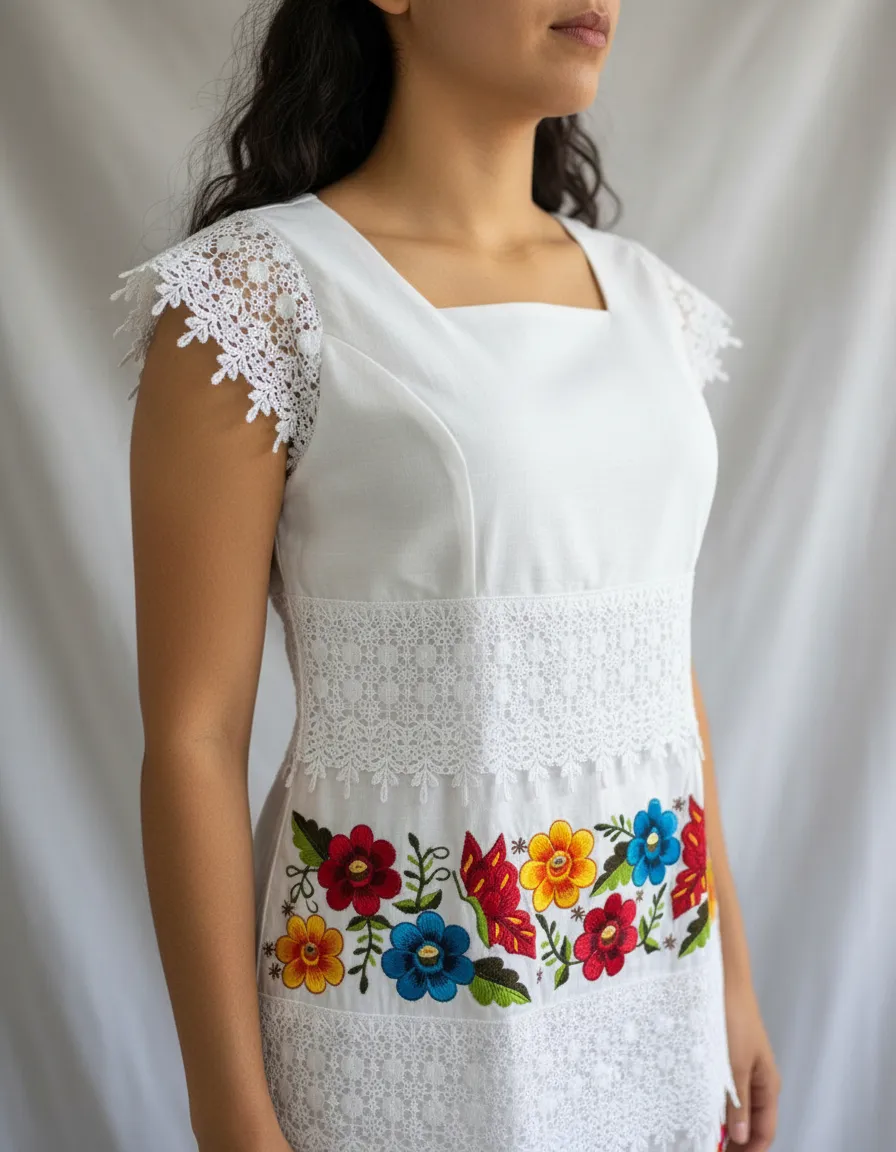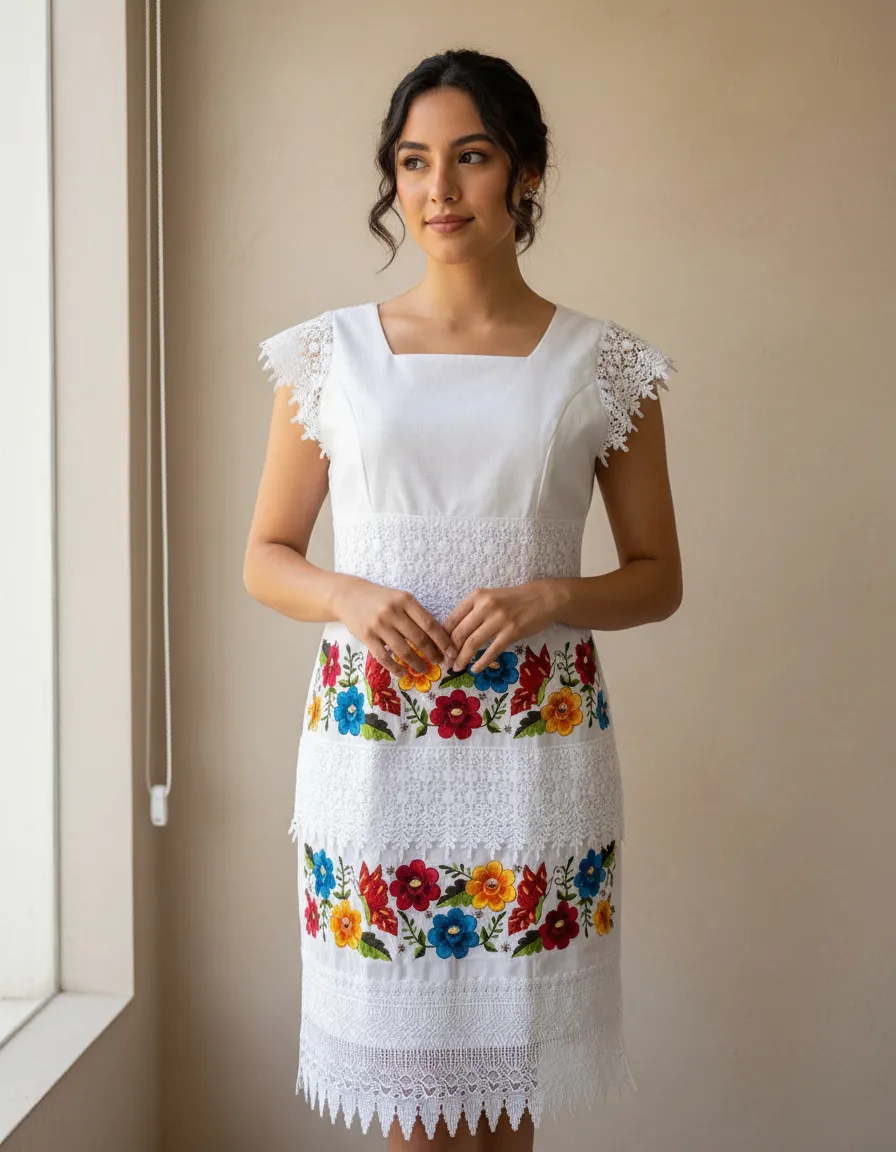 El vestido bordado yucateco artesanal modelo Mariposa de Mayakim es una pieza única que combina tradición y elegancia. Su diseño en lino Flamé proporciona una silueta fluida y cómoda, ideal para diversas ocasiones como aniversarios, bodas y celebraciones de cumpleaños. El delicado cuello cuadrado y las mangas cortas añaden un toque femenino, mientras que el encaje inglés o guipiur enriquece el acabado, aportando un aire boho y casual a tu vestuario. Este vestido se adapta con facilidad a diferentes estilos y ambientes. El largo corto ofrece frescura y libertad de movimiento, permitiéndote disfrutar plenamente de cada momento. Cada vestido refleja la calidad y el cuidado en su elaboración, haciendo que cada detalle cuente.