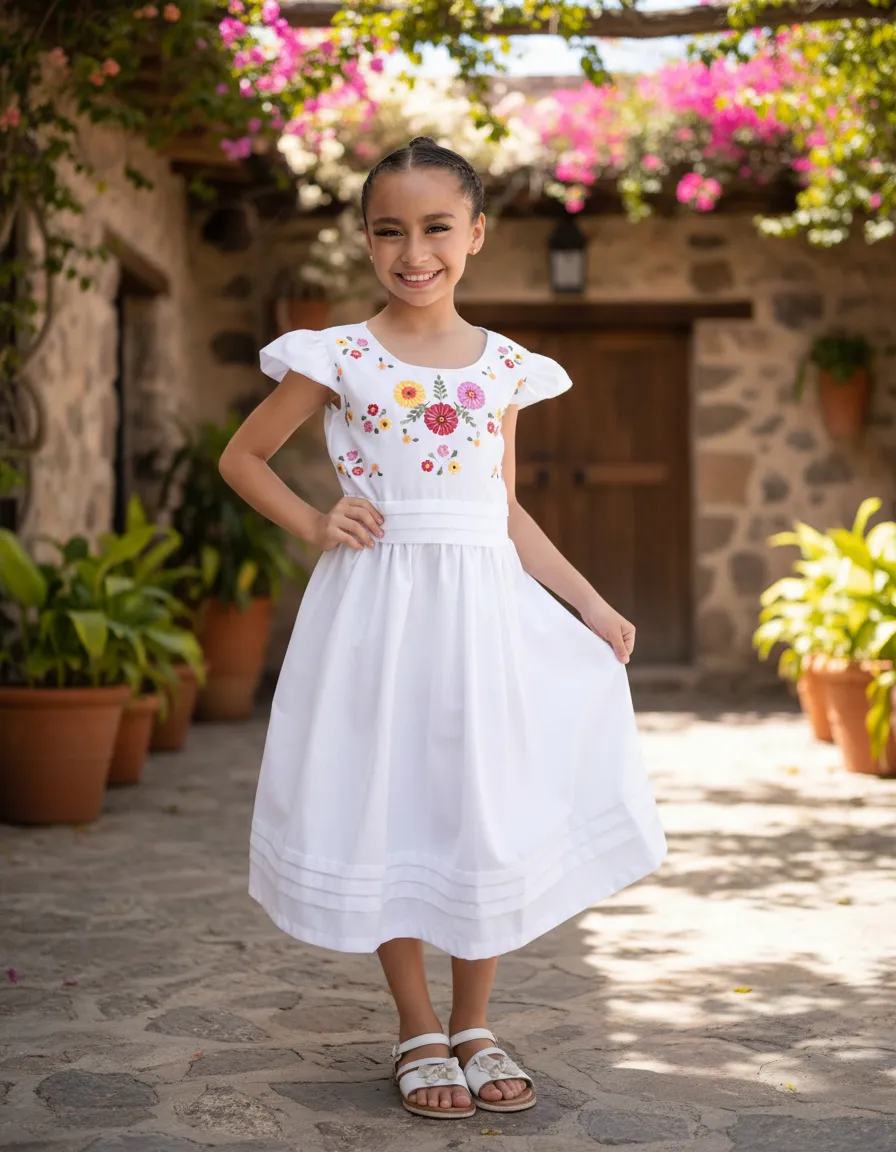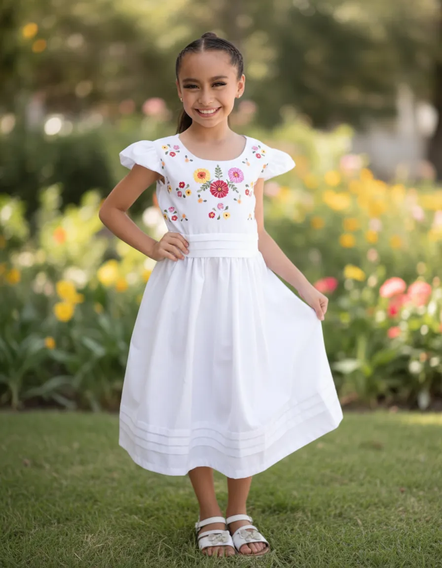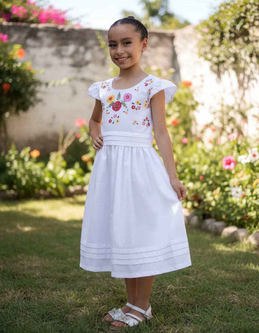 El estilo vintage del modelo Florecitas resalta la belleza clásica, mientras que el bordado delicado aporta un detalle encantador que hará que tu niña se sienta especial. Este vestido es versátil y se puede combinar con diferentes accesorios para crear looks únicos. Ya sea que lo lleve con sandalias o zapatillas, siempre lucirá adorable. Con Mayakim, cada momento se convierte en una celebración de estilo y elegancia.